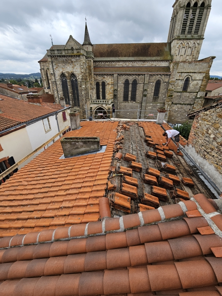 Rénovation d'une couverture en tuile canal à Billom.